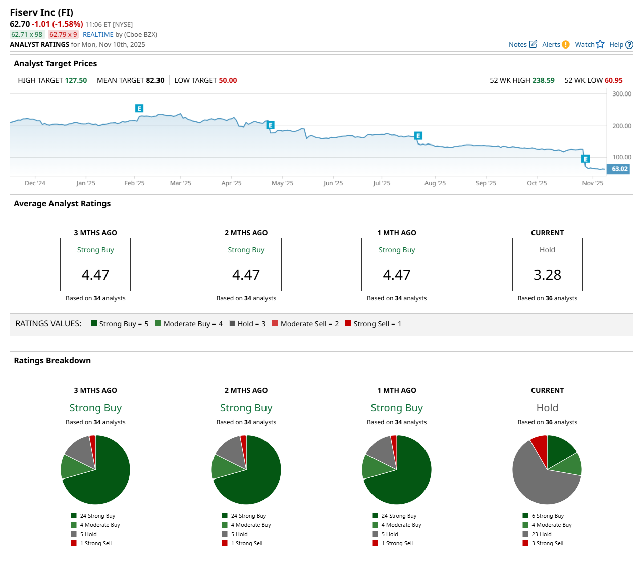 On Nov. 5, BNP Paribas Exane downgraded Fiserv to “Neutral” with a $62 price target.