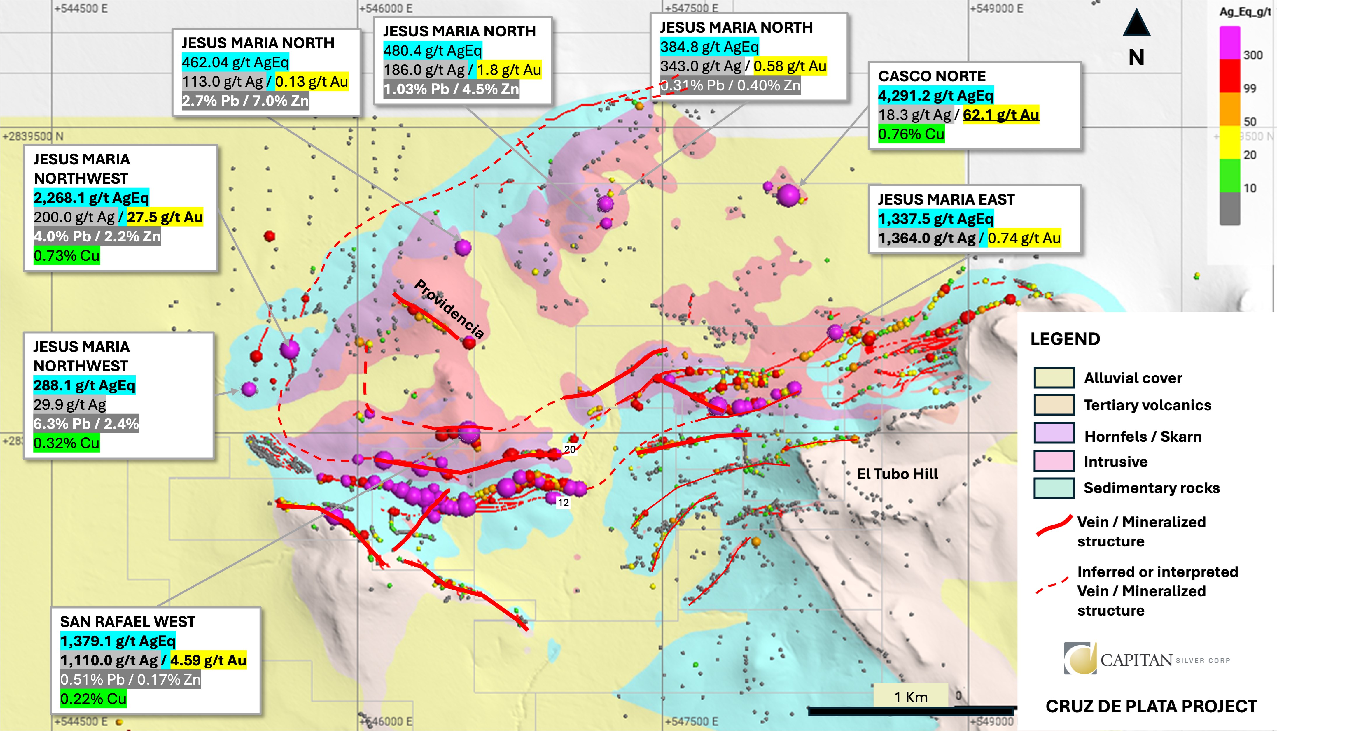 Alberto Orozco, CEO of Capitan Silver, commented: "The continued growth and evolution of Cruz de Plata has been tremendously exciting for the Company. What began as a handful of isolated silver targets has expanded into a much larger mineralized system. The new detailed geological map and surface sampling highlights how robust the Cruz de Plata system can be, while immediately giving us multiple new targets to aggressively move to a drill-ready stage. We would also like to announce that we are upsizing our Phase One Drill Program by 50%, for a total of 15,000 metres, which is fully funded.