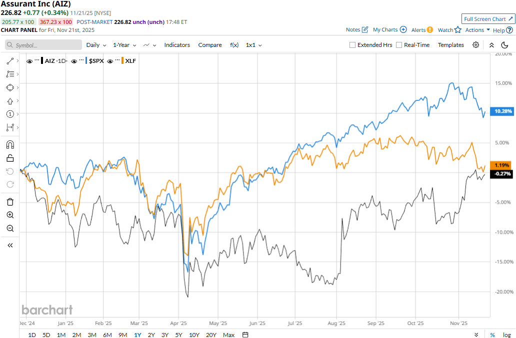 Narrowing the focus, Assurant has also underperformed the sector-focused Financial Select Sector SPDR Fund’s (XLF) 6.9% gains in 2025 and 3% uptick over the past 52 weeks.