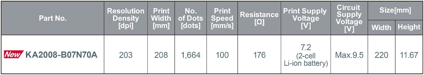 - Key Product Specifications for ROHM's New KA2008-B07N70A Thermal Printhead