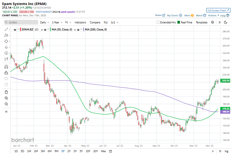 Despite that, EPAM has been trading above its 50-day and 200-day moving averages since late October and early November, reinforcing an uptrend.